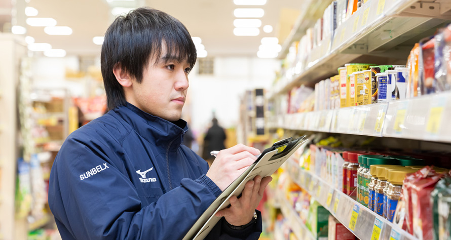 開店前の品出し、開店後の発注、営業中の菓子や食品の品出しを行っています。夕方から夜にかけては、売場の商品の復元を行い、その後閉店にかけて翌日の準備を行っております。